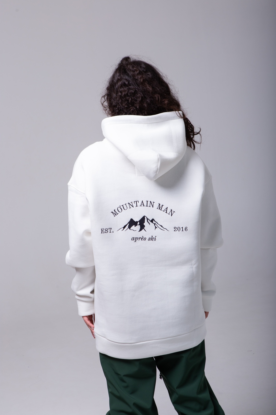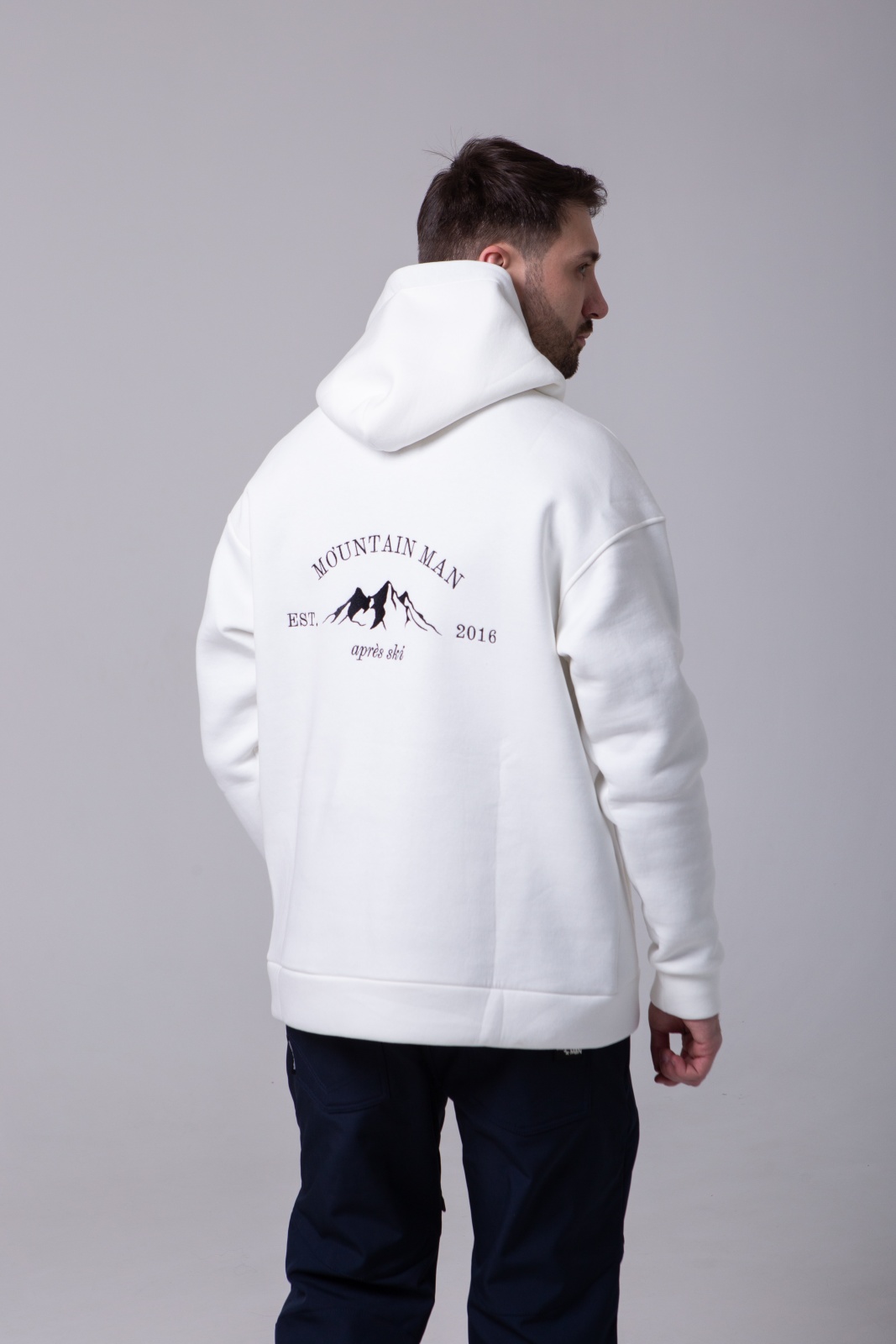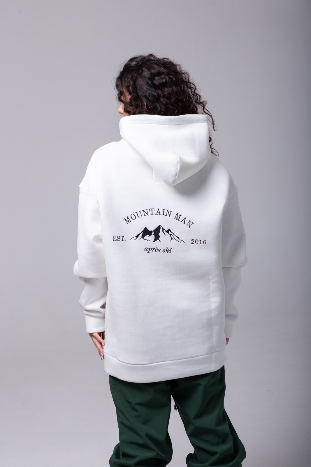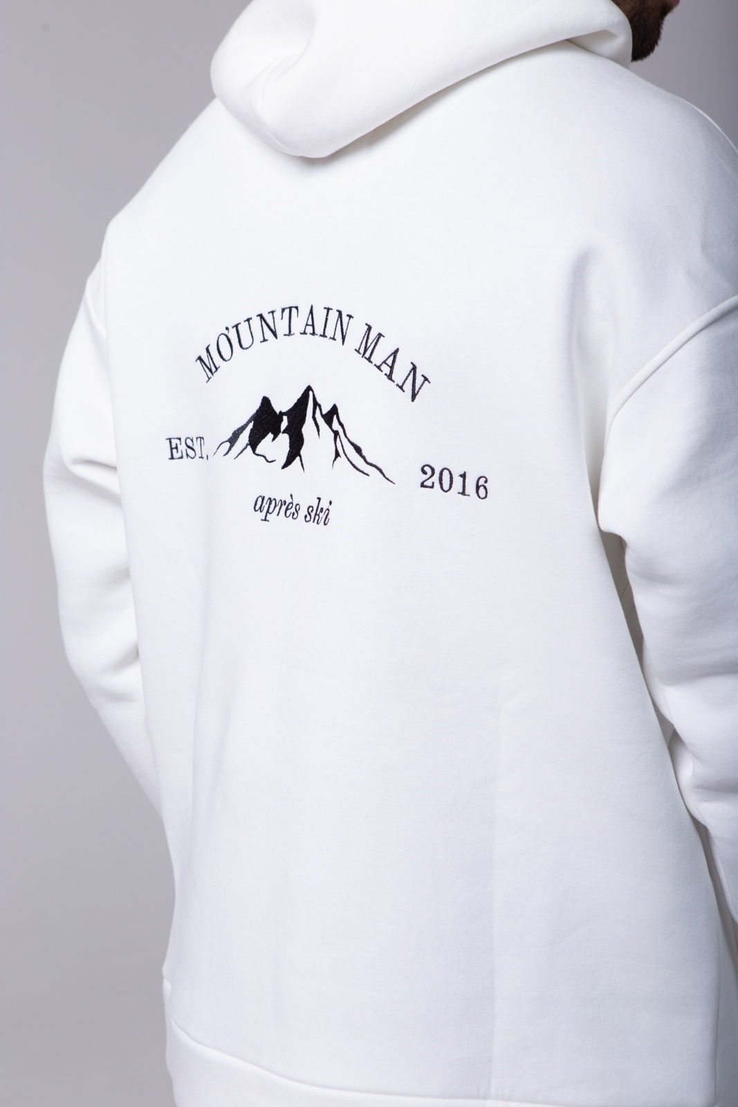 Белое худи Apres Ski — это не просто тёплая базовая вещь, а символ любви к горам и активному отдыху. Модель выполнена из плотного футера 3-х нитки с мягким начёсом (340 г/м²), что обеспечивает тепло, комфорт и износостойкость. На спине — вышивка "MountainMan", отсылающая к атмосфере après-ski и духу свободы. Худи создано для тех, кто ищет сочетание удобства, уюта и минималистичного, но выразительного дизайна.