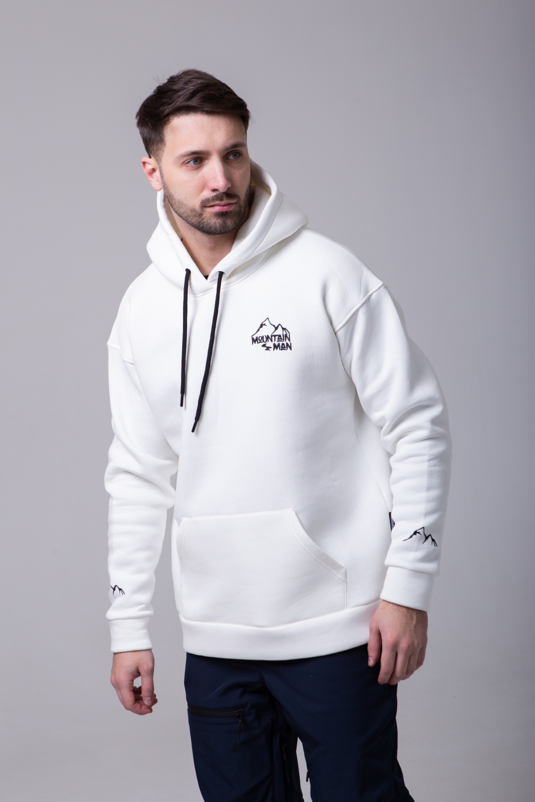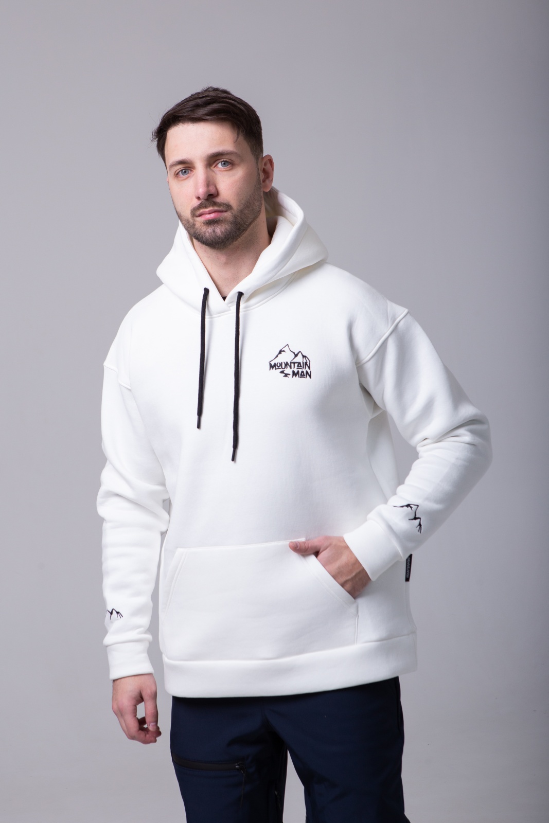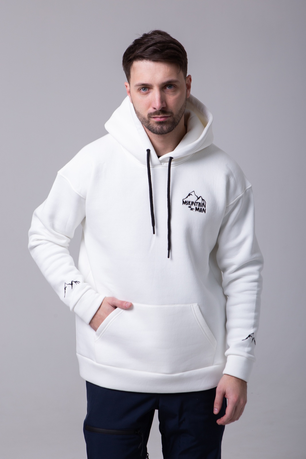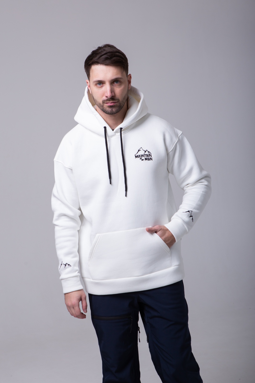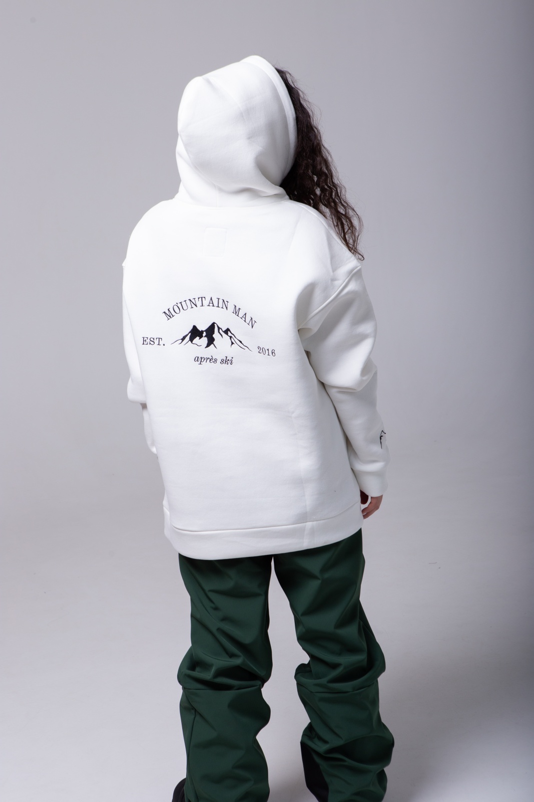 Белое худи Apres Ski — это не просто тёплая базовая вещь, а символ любви к горам и активному отдыху. Модель выполнена из плотного футера 3-х нитки с мягким начёсом (340 г/м²), что обеспечивает тепло, комфорт и износостойкость. На спине — вышивка "MountainMan", отсылающая к атмосфере après-ski и духу свободы. Худи создано для тех, кто ищет сочетание удобства, уюта и минималистичного, но выразительного дизайна.