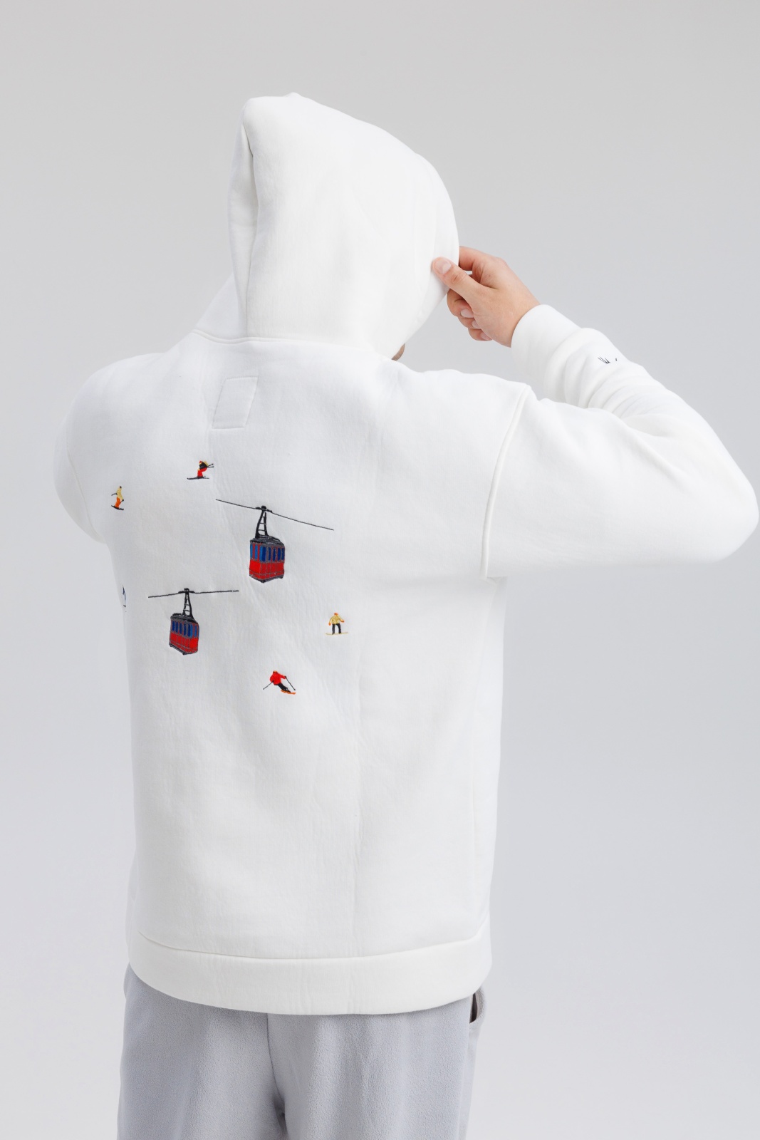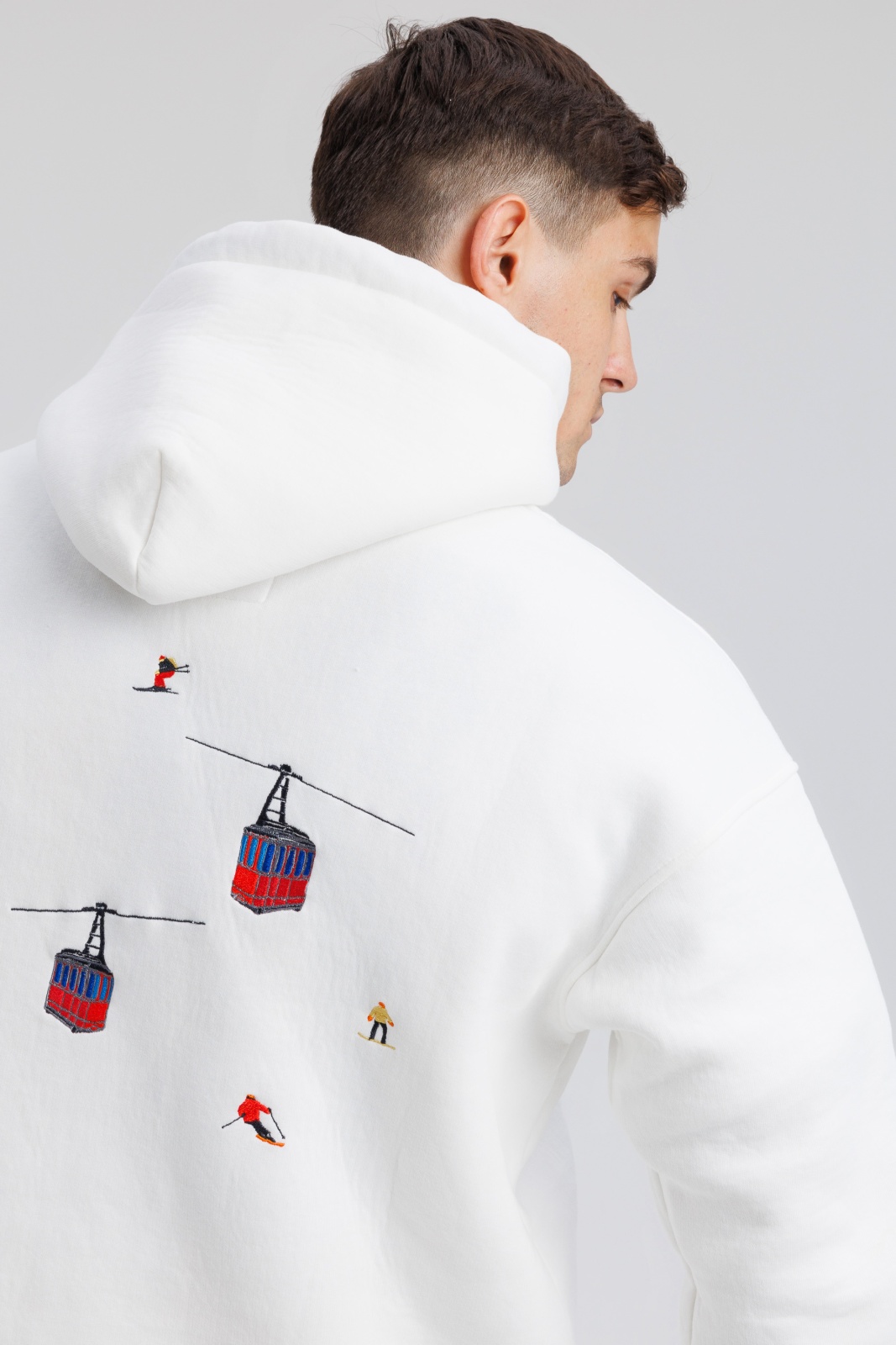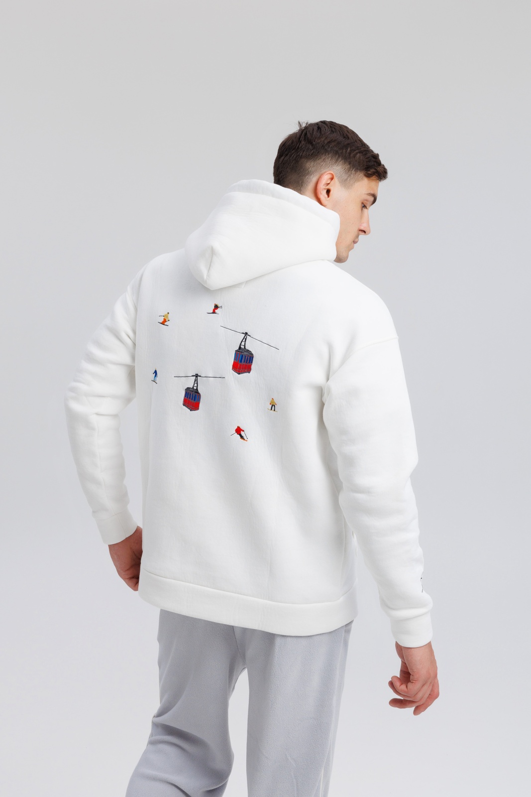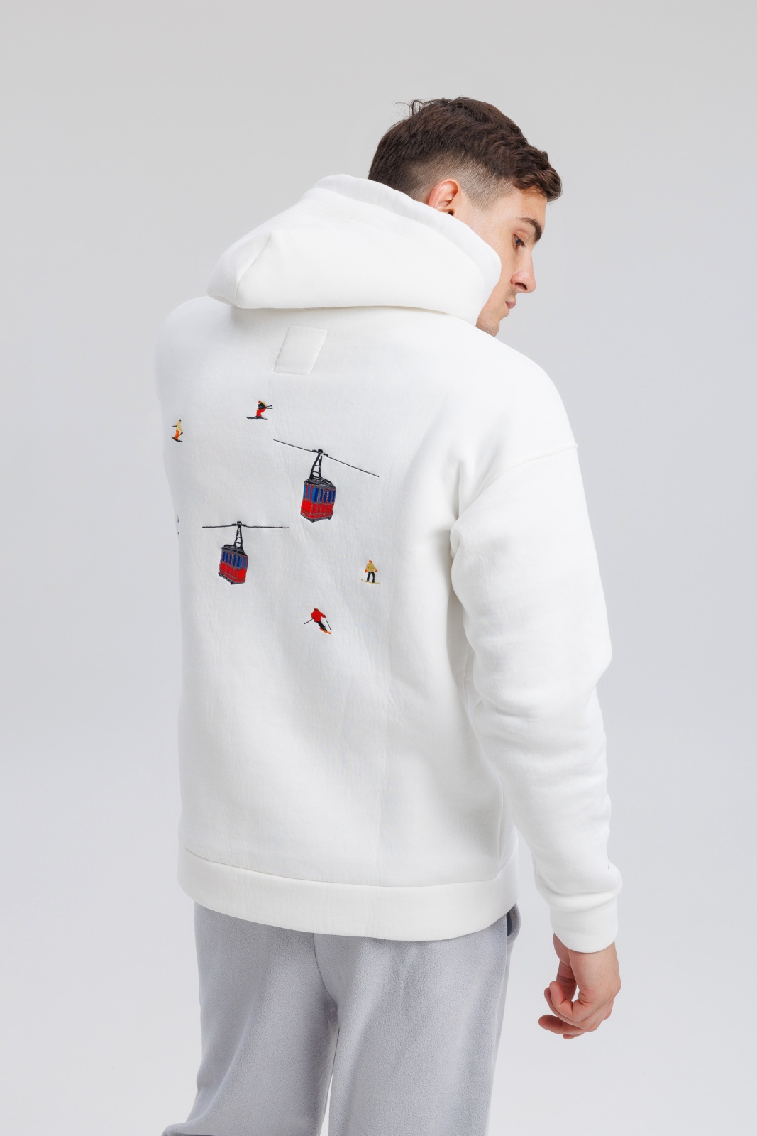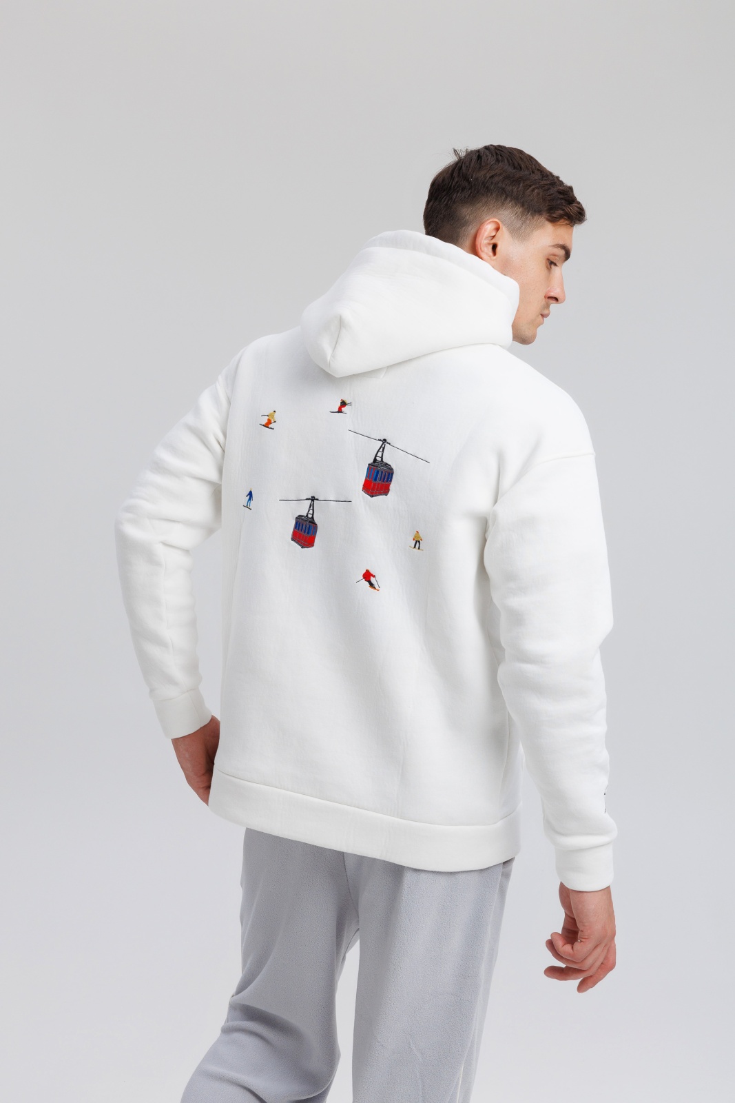Тёплые худи Powder Peak в белом цвете — это удачное сочетание премиального футера, продуманного кроя и символичного дизайна. Модель выполнена из плотной 3-ниточной ткани с начёсом (340 г/м²), что обеспечивает тепло и мягкость при температуре от -5 до +15°C. Изделие украшено вышивкой в виде подъёмника с кабинками — акцент, вдохновлённый атмосферой зимних курортов и активного отдыха. Благодаря oversize-силуэту и универсальной посадке, худи подходит как мужчинам, так и женщинам. Идеально для прогулок, путешествий или просто уютных дней в городе.