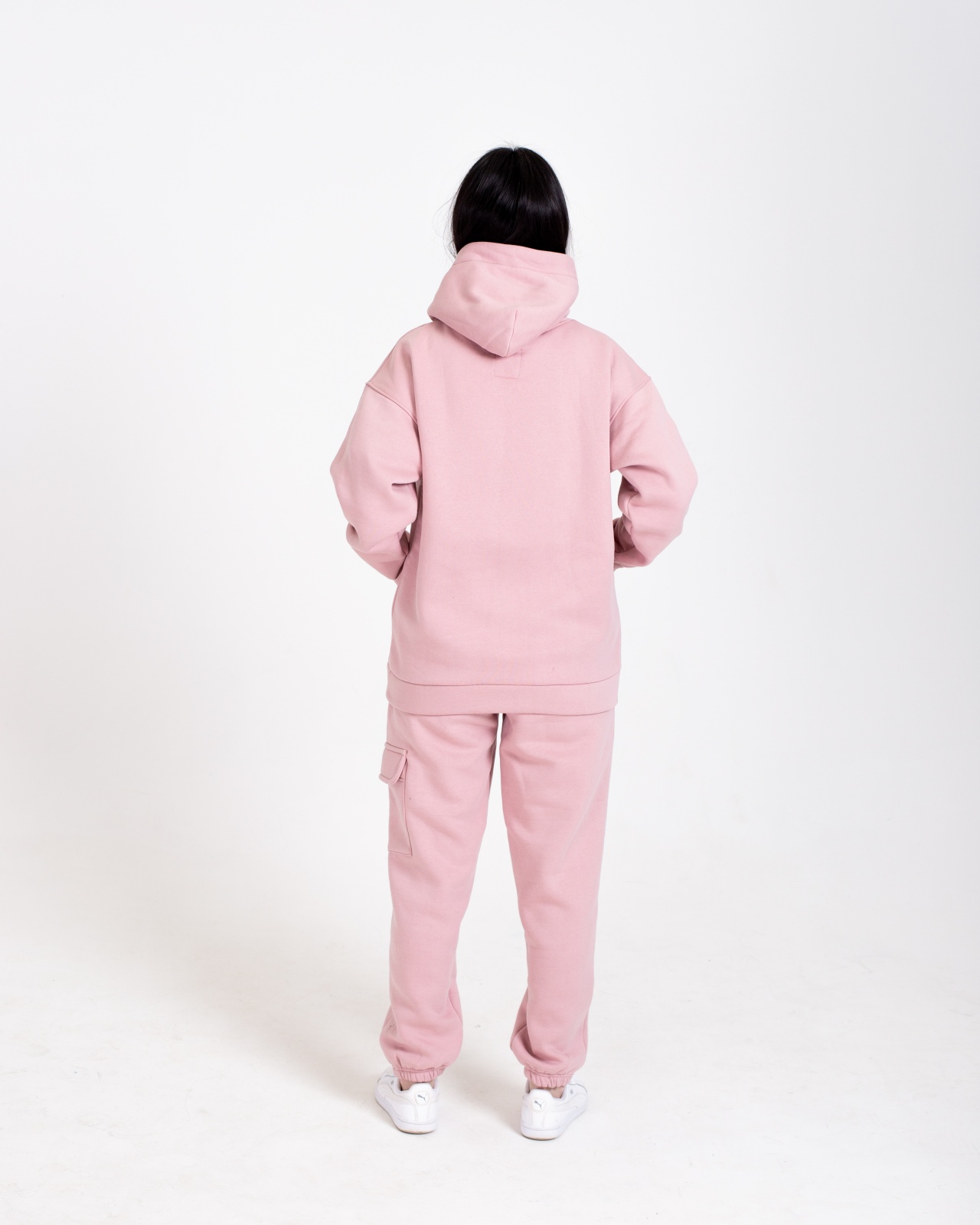 Свободный крой, унисекс-дизайн и нежный пудрово-розовый оттенок делают костюм универсальным и удобным для мужчин и женщин. Комплект включает в себя худи с капюшоном и джоггеры — тёплый спортивный костюм отлично садится по фигуре, не сковывает движений и подходит на температуру от +5 до +18°C.
