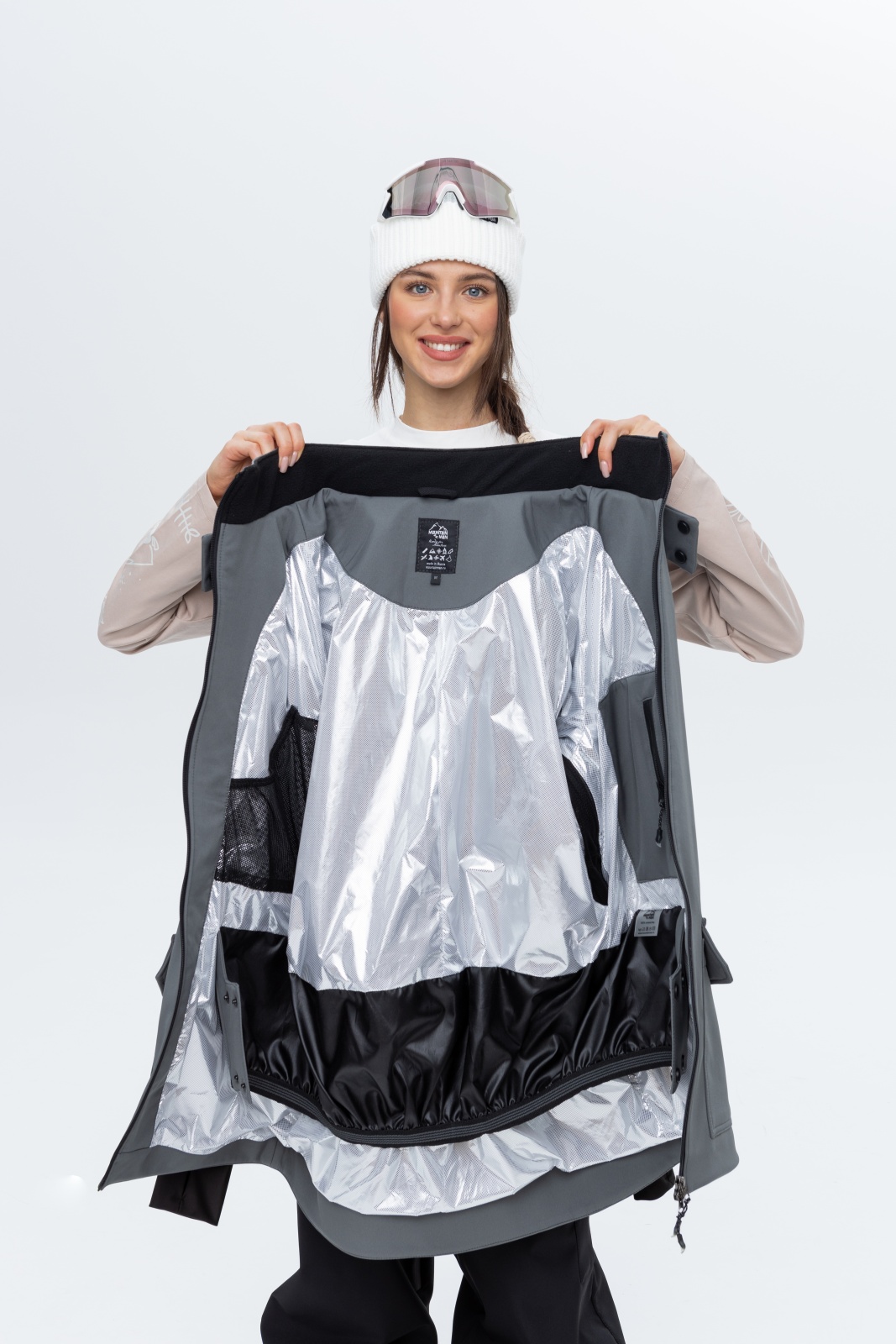 - Фольгированная подкладка «соты» — удерживает тепло, создавая эффект термоса, при этом обеспечивает вентиляцию.