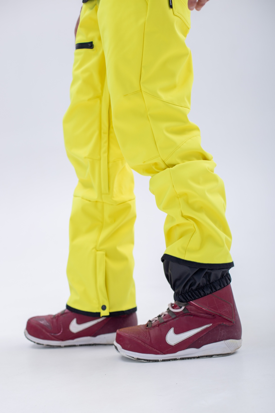 • Широкие штанины — легко надеваются поверх сноубордических ботинок и не мешают движению.